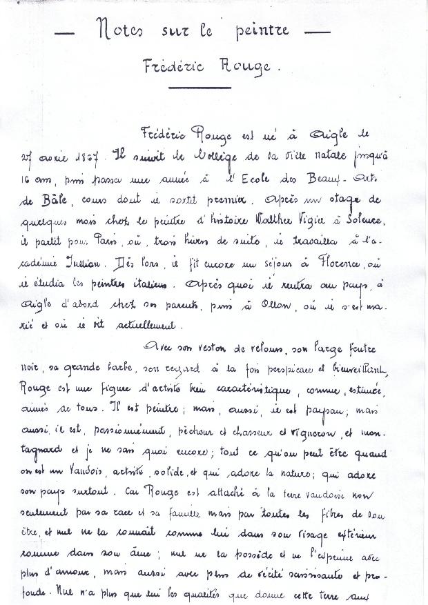 Et la première page des "Notes sur le peintre Frédéric Rouge"