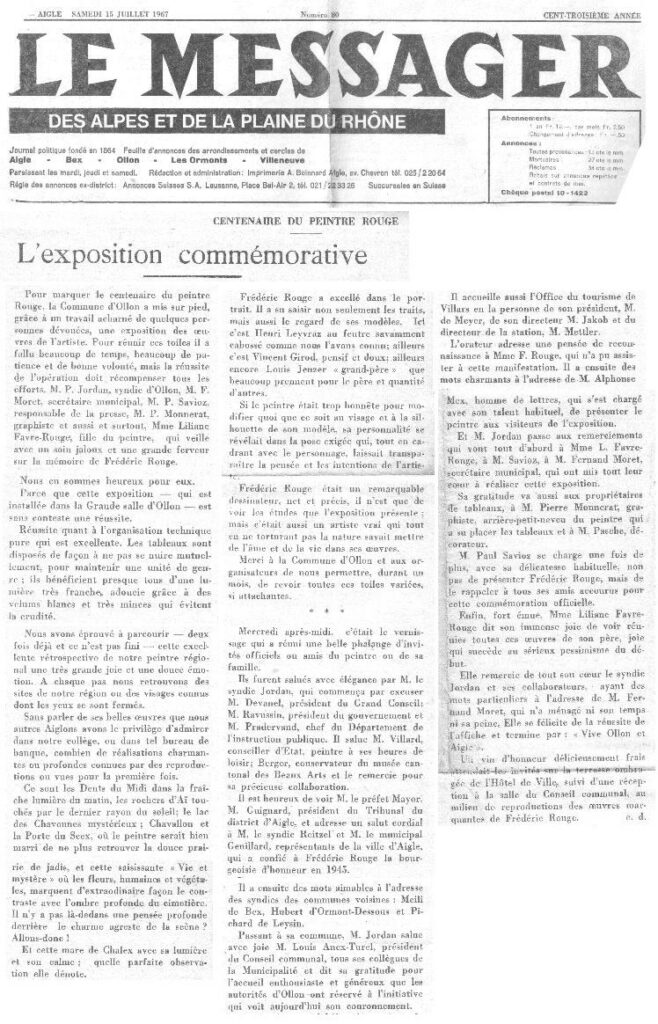 Presse de l’exposition à Ollon de 1967